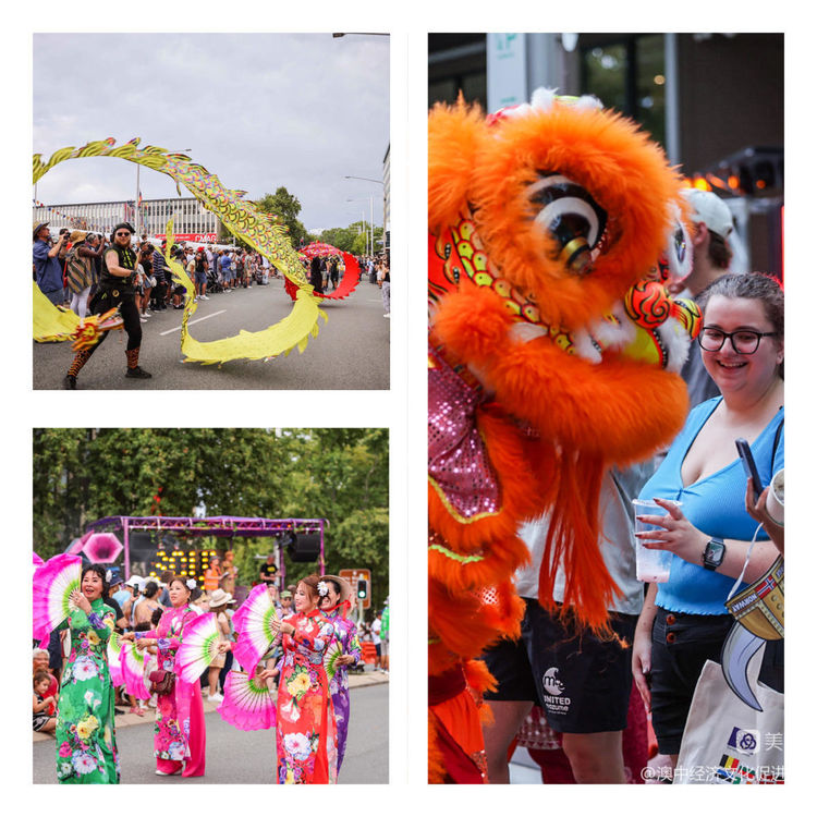 💐💐💐游行活动是多元文化节中的重头戏。星期六,2月18日下午在堪培拉市中心隆重举行。各民族社团的都穿上各自的民族服装,载歌载舞,吸引了成千上万观众的眼球。澳大利亚首都华人社团联合会与澳大利亚广西联谊会, 堪培拉澳华会共同组织的游行队伍,由堪培拉福山舞狮团领头,汉服队随后,紧接着是咱们的旗袍队太极武功方队,热热闹闹,按政府规定的线路缓缓行进💐💐💐