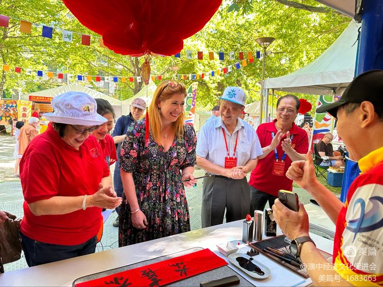 切尼部长参观了澳华会书法摊位并在张老师的指导下书写了“恭喜”二字,这对她来说确是一种不小的挑战