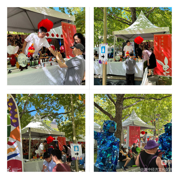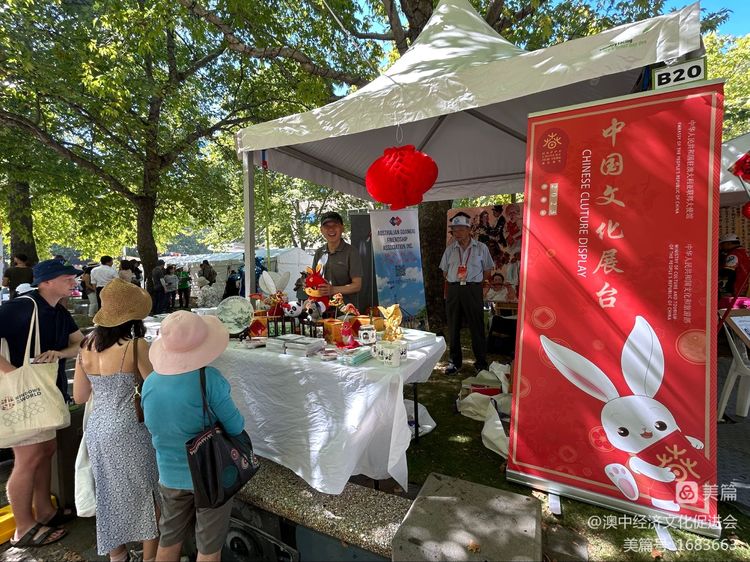 中国驻澳大使馆在多元文化节中设置摊位,展示不少中国传统工艺品,并免费提供游客的书籍、小工艺品等