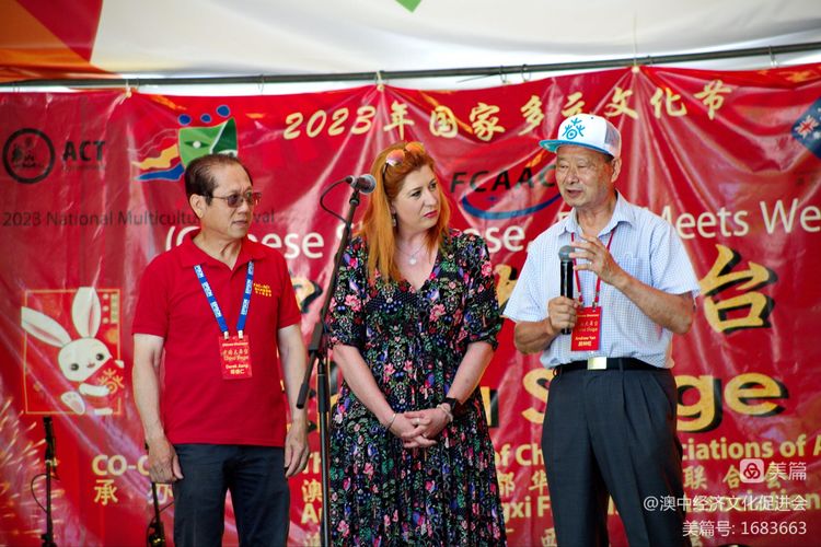 首都地区多元文化部长塔拉. 切尼Tara Cheyne 10点准时来到“中国大舞台,与主办人颜种旺、蒋德仁进行询问交谈后上台致辞,她感谢堪培拉华人社会多年来对多元文化所作的努力和贡献。联合会总负责人颜种旺先生感谢切尼部长对堪培拉华人社团的支持和对“中国大舞台”的资助。