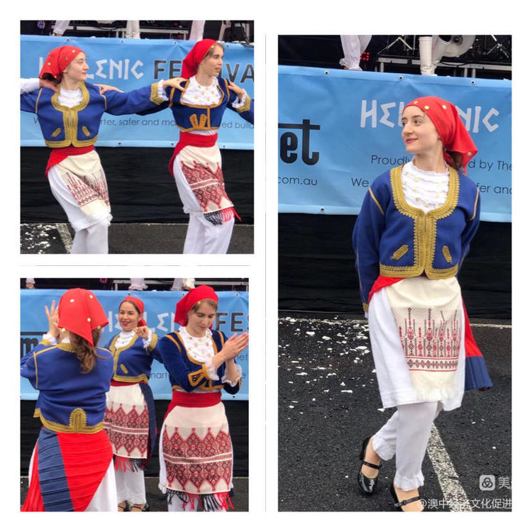 希腊舞蹈演员在表演她们欢快的民族舞💐