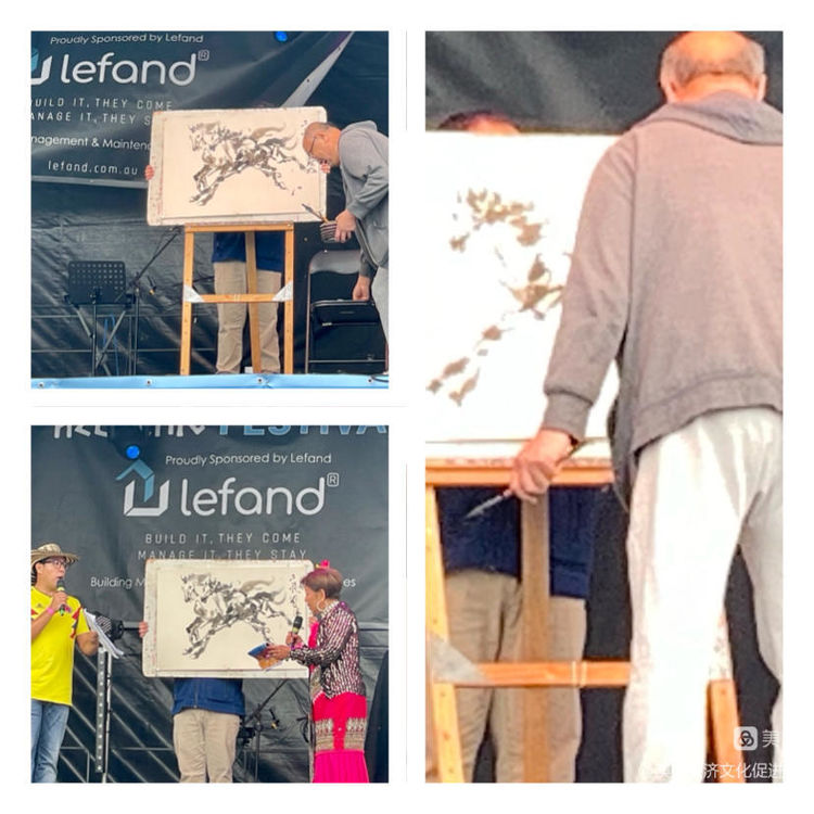 我会理事、堪培拉著名华人画家潘鞍即兴表演国画,几分钟内一幅二马图跃于纸上👍神笔…